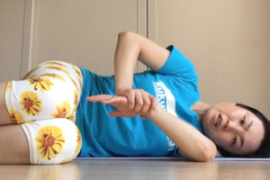 このエクササイズは、術前や術後可動域がある程度戻った後なら、動画に合わせてやってみてください。
