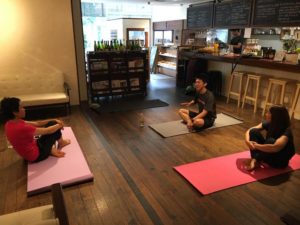 終わってから、みんなでプロテイン入りの桃のスムージーをいただきながら、レッスンの感想やフィードバックをいただきました。